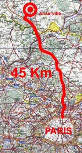 Located at 45 km North West of Paris in the French countryside, close to Isle Adams, you can drive to it in 45 minutes from Paris taking Road ''Nationale 1'' or Highway A 16 towards Calais. That same Highway will take you to London through the Channel Tunnel. ( RETURN )
