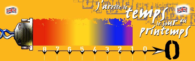 Le dispositif mis en place pour effectuer " l'arrêt du temps " se compose d'une caméra en temps réel sur chaque fuseau horaire dans un lieu que nous aurons choisi. D'heure en heure, ces caméras fonctionneront successivement, diffusant sur le réseau l'image de ce temps " suspendu ". Des artistes et des musiciens interviendront en temps réél sur cette image présente sur Internet A ce sujet un dossier plus détaillé succédera à celui-ci en temps opportun. Les contenus diffusés seront en parfaite adéquation à l'idée de printemps, et en parfaite cohérence formelle d'un lieu à l'autre.